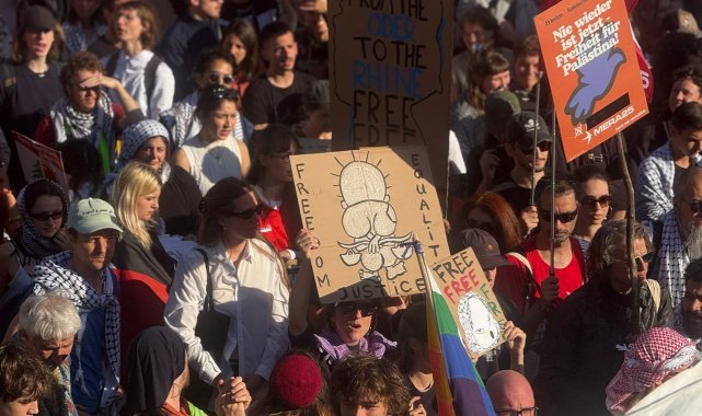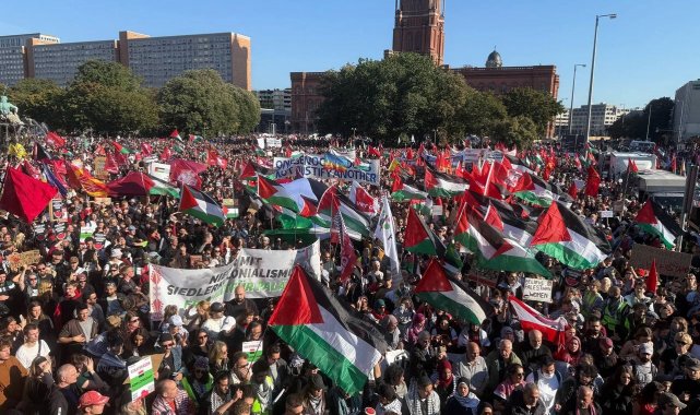 Berlin'deki "Tüm Gözler Gazze'de" gösterisinde on binlerce kişi İsrail'i protesto etti