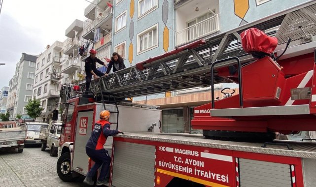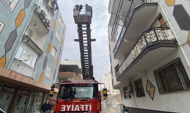 Aydın Efeler ilçesinde beş katlı binada çıkan yangın nedeniyle tüm apartmanı duman sararken mahsur kalan vatandaşları itfaiye ekipleri merdivenli araç marifeti ile kurtardı.