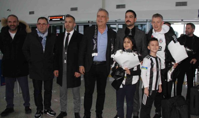 Beşiktaş, Trendyol Süper Lig'in 23. haftasında Sivasspor ile oynanacağı maç için Sivas'a geldi.-10 derece ölçülen hava sıcaklığında kafileyi, siyah-beyazlı taraftarlar havalimanında çiçeklerle karşıladı.