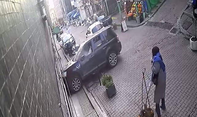 Kaza anı ise güvenlik kameralarına anbean yansıdı. Görüntülerde, kadın şoförün freni tutmayan aracın kontrolünü hakimiyetini kaybedip ilk olarak sokakta bulunan saksılara ardından demir korkuluklara çarptığı görülüyor.