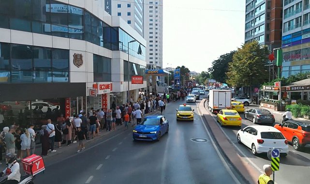 Beşiktaş Fulya'da bir zincir marketin açılışında hediye çeki verileceğini duyanlar 8 saat kuyrukta bekledi. Marketin önünde kilo metrelerce uzunluğunda oluşan kuyruk havadan görüntülendi.