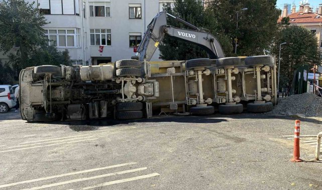 Beşiktaş'ta hafriyat kamyonu devrildi: Şoförün yaralandığı kaza anı görüntülendi