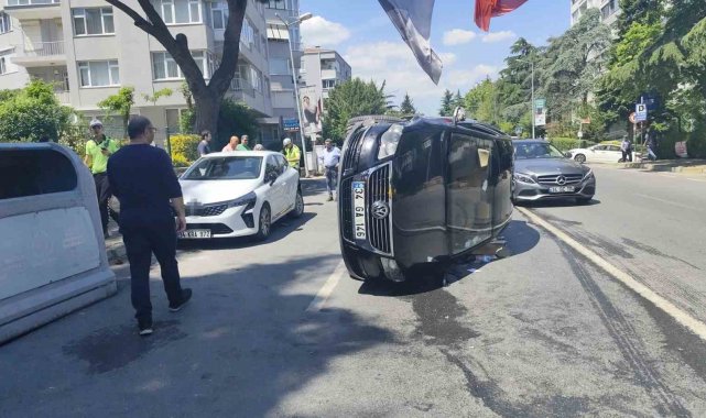Beşiktaş'ta park halindeki araca çarpan otomobil yan yattı: 1 yaralı
