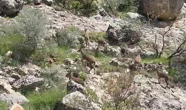 Adıyaman'ın Besni ilçesinde dağ keçileri, sürü halinde vatandaşların kamerasına yansıdı.