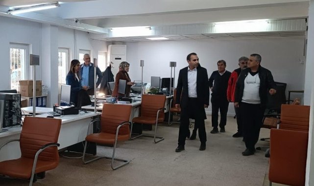 Besni Merinos Kavşağı'ndaki eski yüksekokul olarak bilinen binaya taşınan geçici hükumet binasının hizmete girdiğini belirten Besni Kaymakamı Çağlar Partal, binada incelemelerde bulundu.