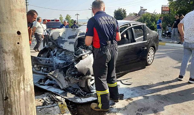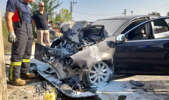 Beton direğe çarpan otomobil hurda yığınına döndü: 1 yaralı