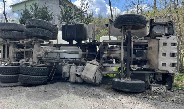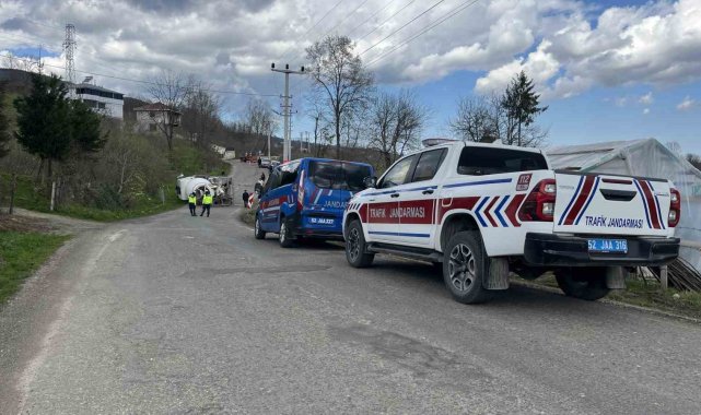 Ordu'da, Çaybaşı Belediyesine ait beton mikserinin devrildiği kazada sürücü yaralandı.