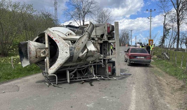 Beton mikseri devrildi: 1 yaralı