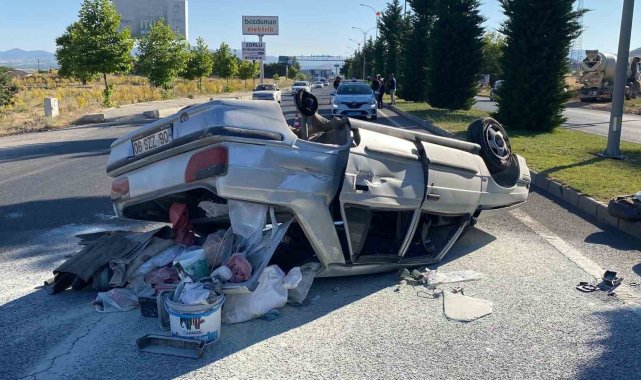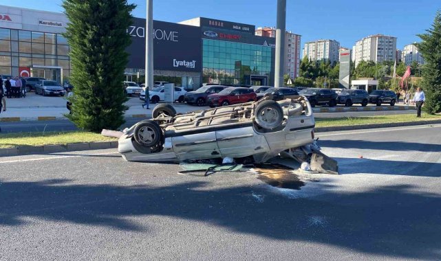 Beton mikseri ile çarpışan otomobil karşı şeride geçerek ters döndü: 4 yaralı