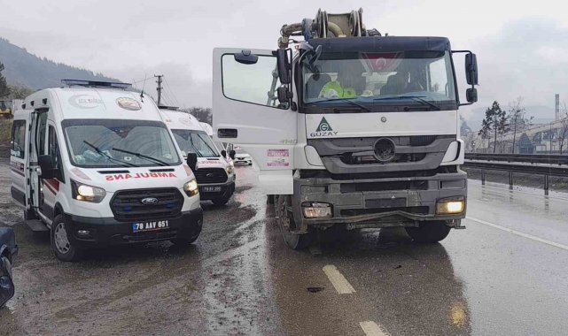 Karabük'te beton mikseri ile otomobilin çarpışması sonucu 1'i çocuk olmak üzere 5 kişi yaralandı.