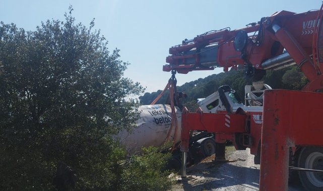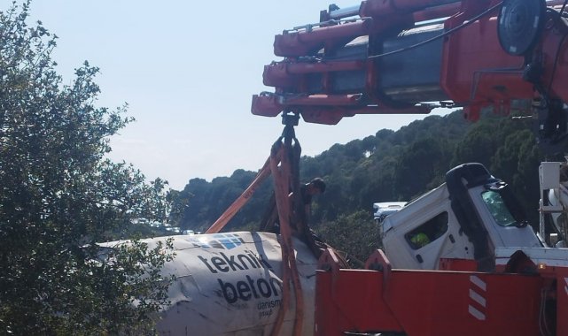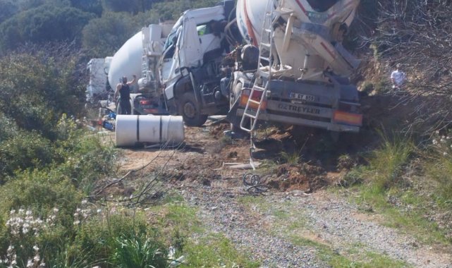 Bursa'nın Gemlik ilçesinde sürücüsünün kontrolünden çıkan beton mikseri yan yattı. Yaşanan kazada sürücü ağır yaralandı.