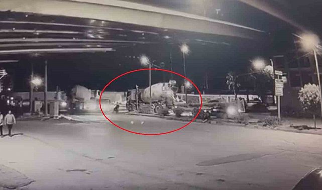 Hatay'ın Antakya ilçesinde beton mikseri, motosikleti ezerek üzerinden geçti. Motosikletten zıplayarak, beton mikserinin altında kalmaktan kurtulan sürücünün o anları kameraya yansıdı.