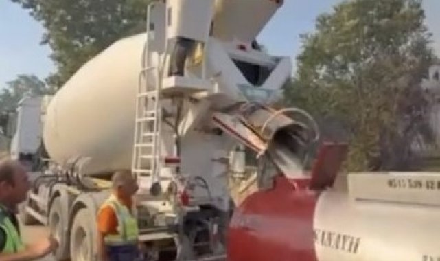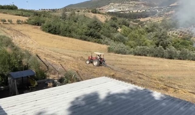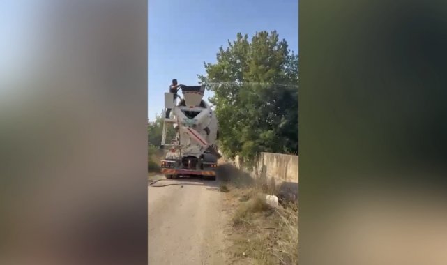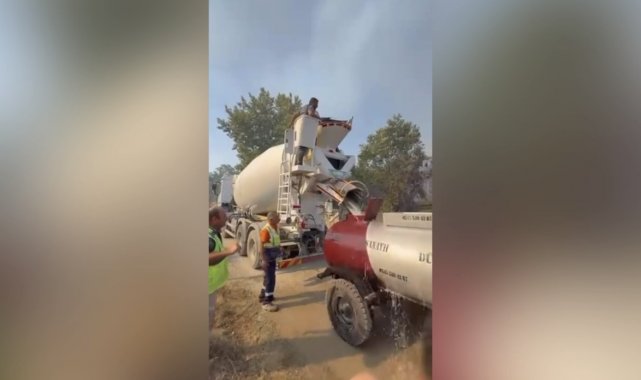 Beton mikserleri ve iş makineleri ile yangını söndürmek için seferber oldular