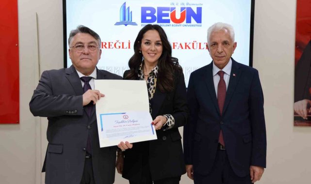 BEUN Ereğli Eğitim Fakültesi 2025-2026 Akademik Yılı Genel Kurul Toplantısı'nda BEUN Rektörü Prof. Dr. İsmail Hakkı Özölçer, ulusal ve uluslararası indekslerde yayımlanan bilimsel çalışmalarıyla ve idari görevlerdeki üstün performanslarıyla öne çıkan akademisyenlere akademik yayın ödül belgesi ile teşekkür belgelerini takdim etti. Belge takdiminin ardından toplu hatıra fotoğrafı çekilmesiyle toplantı sona erdi.