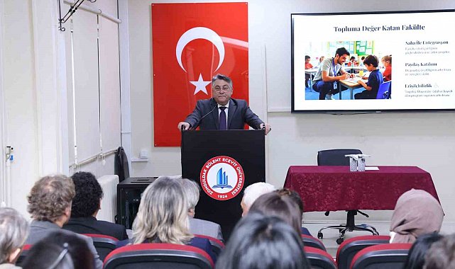 Toplantıda konuşan BEUN Ereğli Eğitim Fakültesi Dekanı Prof. Dr. Ali Azar ise 2024-2025 Akademik Yılı'nda fakültede gerçekleştirilen eğitim-öğretim, araştırma ve toplumsal katkı faaliyetlerine ilişkin kapsamlı bir sunum gerçekleştirdi. Dekan Prof. Dr. Ali Azar, 2025-2026 Akademik Yılı'na yönelik planlanan çalışmalar, akademik yıl planlaması ve devam eden projeler hakkında bilgi vererek Eğitim Fakültesinin gelişimine verdikleri desteklerden dolayı BEUN Rektörü Prof. Dr. İsmail Hakkı Özölçer'e teşekkür etti.