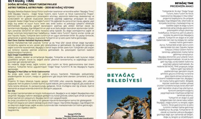 DENİZLİ (İHA) – Denizli'nin Beyağaç Belediye Başkanı Sezayi Pütün, turizm ve ekonomide ilçeye değer katacak 'Beyağaç Time' projelerini kamuoyuna tanıttı.
