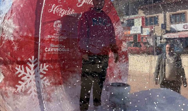 Beyağaç Belediyesi vatandaşların yılbaşı hatıralarını renkli şekilde ölümsüzleştirmeleri için Beyağaç Çarşı Meydanına dev kar küresi yerleştirdi.