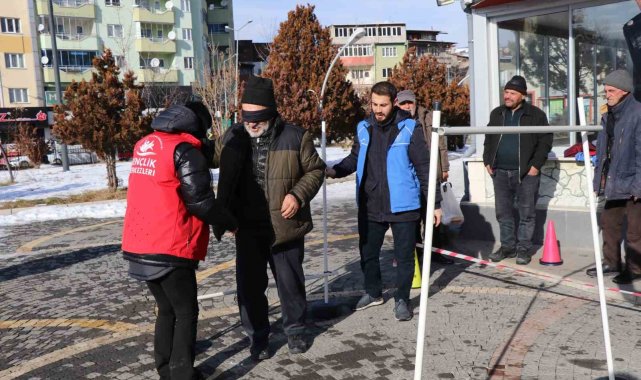 Erzurum'un Oltu ilçesinde vatandaşlar görme engelli bireylerin günlük hayatta karşılaştıkları zorlukları deneyimlediler.