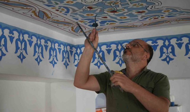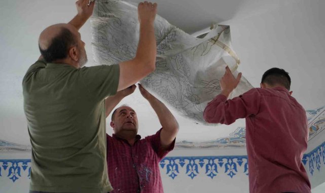 Beyaz duvarlara nakkaşlar el attı: Velişaban Camii nakış motifleriyle süsleniyor