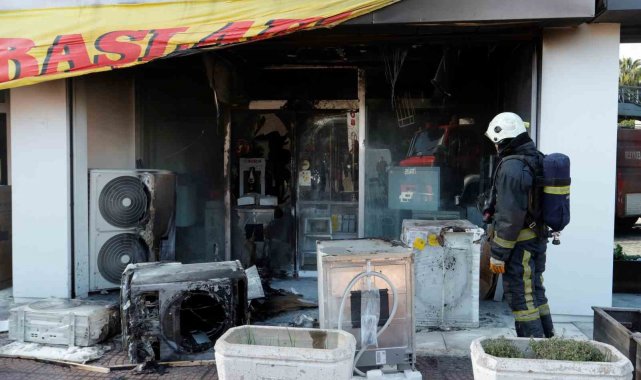 Antalya'da bir beyaz eşya mağazasında klima dış ünitesinden çıkan yangında maddi hasar meydana geldi.