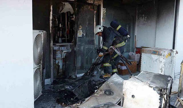 Beyaz eşya mağazasında çıkan yangında ürünler zarar gördü
