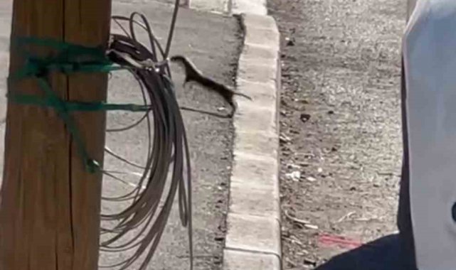 İlçe merkezinde bir vatandaşın kadrajına yansıyan görüntülerde, küçük yapısıyla dikkat çeken gelinciğin, çevik hareketlerle yolun karşısına geçme anları yer aldı. Bir süre etrafını gözetleyen gelinciğin, trafiğin durduğu bir anda hızla koşarak yolun diğer tarafına ulaştığı görüldü.