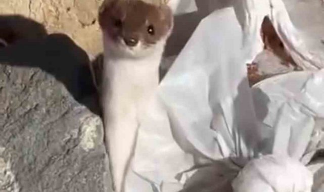 Hakkari'nin Yüksekova ilçesinde ender rastlanan gelincik, vatandaşlar tarafından cep telefonu kamerasıyla ilçe merkezinde kaydedildi.