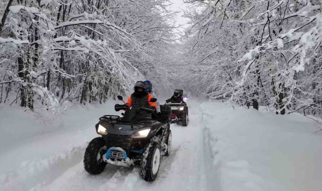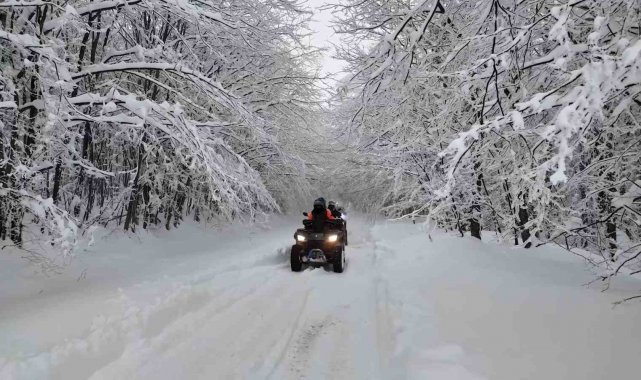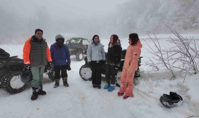 Kocaeli'deki Türkiye'nin önemli kış turizm merkezlerinden Kartepe, vatandaşların uğradığı alanlar arasında yerini koruyor. Hava sıcaklığının -4 derece kadar düştüğü Kartepe'nin yüksek kesimlerinde kar, bir haftadır belirli aralıklarla etkisini sürdürüyor. Samanlı Dağları'nın 1640 rakımlı zirvesi Kartepe'de her yer beyaz örtü ile kaplandı. Kar yağışını fırsat bilen macerasever, ATV ve UTV araçlarıyla karla kaplı doğanın tadını çıkardı. Grup, hem doyasıya eğlendi hem de manzarayı kaydetme imkanı buldu. Yaklaşık 50 santimetreye kadar ulaşan karın tadını çıkaran grup, her sene Kartepe'ye gelerek eğlendiklerini belirtti.