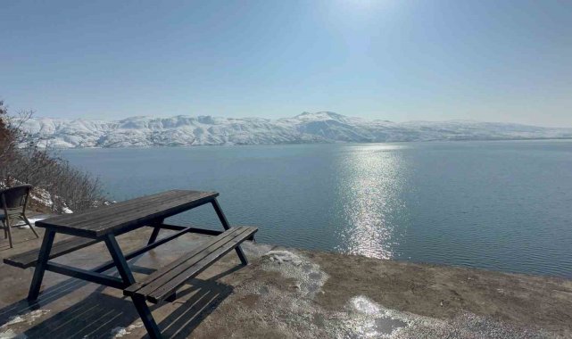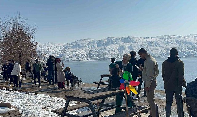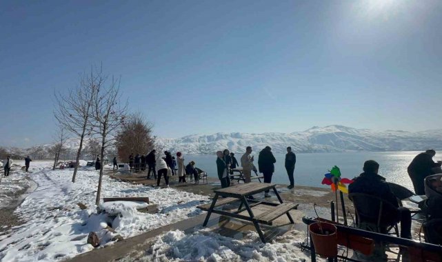 Beyaz örtüyle kaplanan Hazar Gölüne ziyaretçi akını