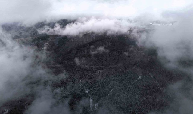 Yer yer yoğun sisle birlikte ortaya kartpostallık görüntüler çıkaran o anlar dron ile görüntülendi.