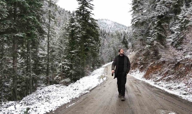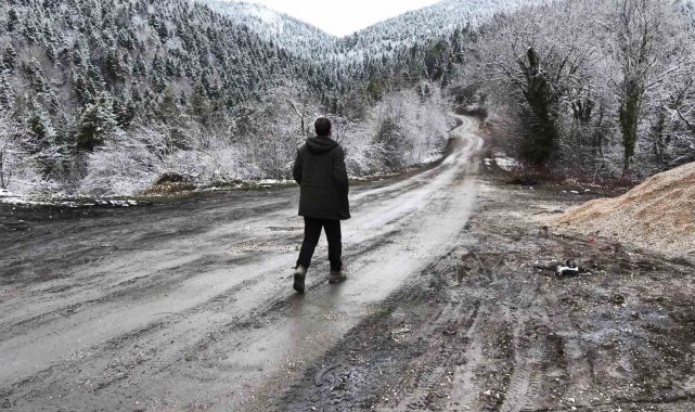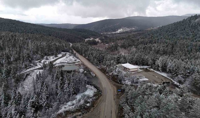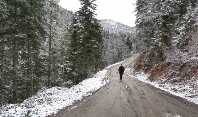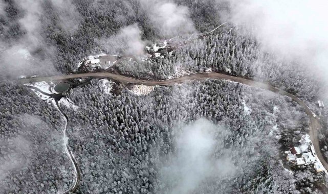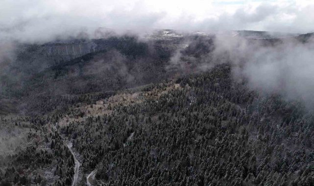 Kar yağışının ardından Safranbolu-Bartın kara yolu Ahmetusta ve Sarıçiçek mevkiinde ormanlar beyaz örtüyle kaplandı.
