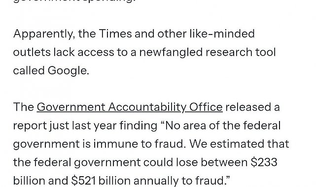 Beyaz Saray, bazı basın organlarının federal hükümet harcamalarında usulsüzlük yapıldığına dair hiçbir kanıtın olmadığı şeklinde yanlış haberler yaptığını belirterek, "Anlaşılan, Google adlı yeni araştırma aracına erişimleri yok" açıklamasında bulundu.