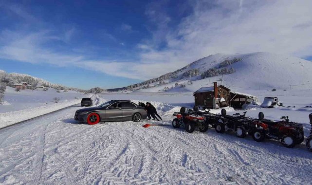 Bolu'da günlerdir aralıksız süren kar yağışıyla beyaza bürünen Abant Gölü, kartpostallık manzarasıyla yerli ve yabancı turistleri büyülerken, ziyaretçiler 1 metreyi bulan kar örtüsü eşliğinde kışın tadını çıkarıyor.