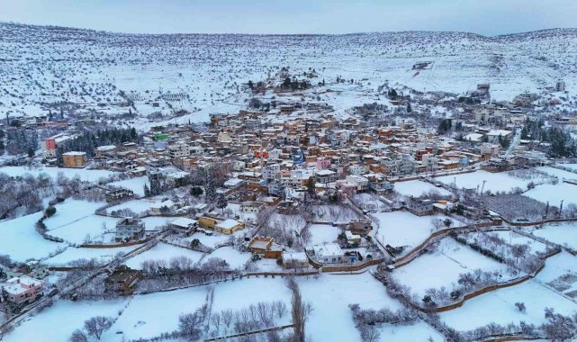 Mardin'in Nusaybin ilçesine bağlı Akarsu Mahallesi, karla kaplanan damları ve doğal dokusuyla görenleri kendine hayran bıraktı.