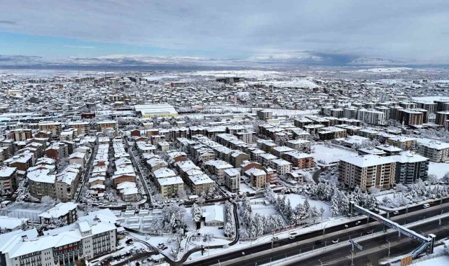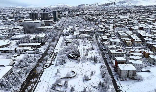 Beyaza bürünen Malatya havadan görüntülendi