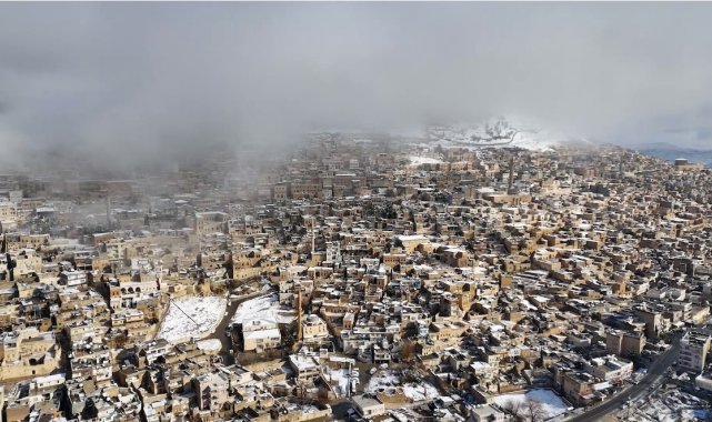Dron ile çekilen görüntülerde, Mardin'in dar sokakları ve özgün mimarisi karla örtünen benzersiz bir manzara sundu. Şehir, tarihi dokusunu koruyarak karla birleşen siluetiyle görsel bir şölen oluşturdu.
