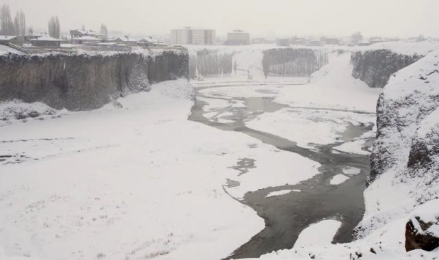 Yer yer 50 metre derinliğe ve yaklaşık 150 metre genişliğe sahip olan kanyon, bölgede etkili olan kar yağışının ardından beyaza büründü.