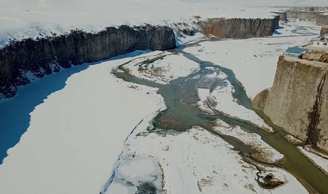 Beyaza bürünen Murat Kanyonu havadan görüntülendi