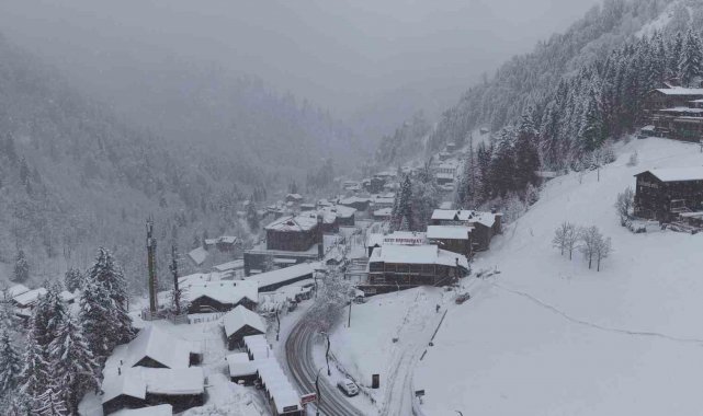 Rize'nin Çamlıhemşin ilçesinde bulunan dünyaca ünlü turizm merkezi Ayder Yaylası, etkili olan kar yağışının ardından beyaza büründü. Beyazlar içerisindeki turizm cenneti havadan görüntülendi.