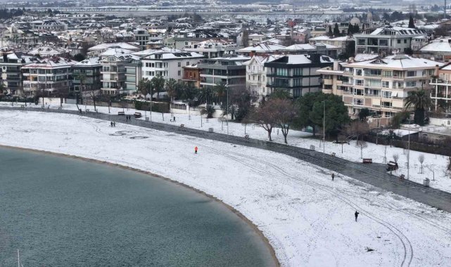 İstanbul'da dün başlayan ve gece saatlerinde etkisini artıran kar yağışı sonrası birçok nokta beyaza bürünürken, Bakırköy'de bulunan Yeşilköy sahili de beyaz örtüyle kaplandı. Sahile gelen vatandaşlardan bazıları yürüyüş yaparken, kimi de kartopu oynadı. Sahilin mest eden karlı manzarası havadan görüntülendi.