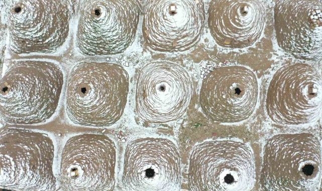 Şanlıurfa'nın tarihi ve turistik ilçesi Harran'da havadan görüntülenen kar görüntüleri eşsiz manzaralar oluşturdu.