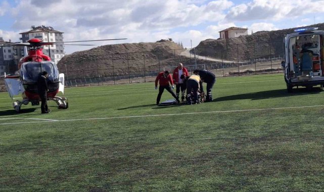 Edinilen bilgilere göre, Darende ilçesinde evinde fenalaşan 75 yaşındaki M.A., ilçedeki devlet hastanesi acil servisine kaldırıldı. Buradaki tetkiklerde beyin kanaması geçirdiği belirlenen hastanın tam teşekküllü bir hastaneye sevki için 112 Ambulans helikopter devreye alındı. Kısa sürede ilçeye gelen ambulans helikopter, ilçe stadyumundan hastayı alarak Malatya Turgut Özal Tıp Merkezi'ne nakletti.