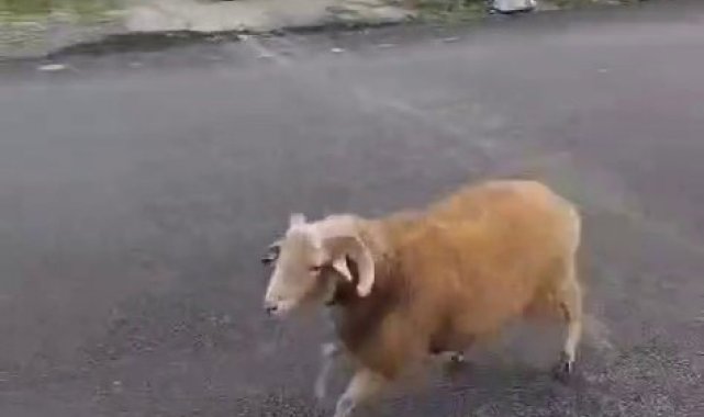 Beykoz'da temizlik yapan işçiler, kendilerini kovalayan koç yüzünden zor anlar yaşadı. Yüzleri gülümseten o anlar cep telefonu kamerasına yansıdı.