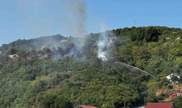 Öte yandan, ormanlık alandan dumanların yükseldiği ve itfaiye ekiplerinin müdahale ettiği anlar dronla görüntülendi.