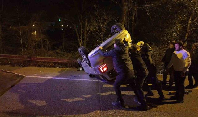 Beykoz'da otomobil takla attı: 2 yaralı