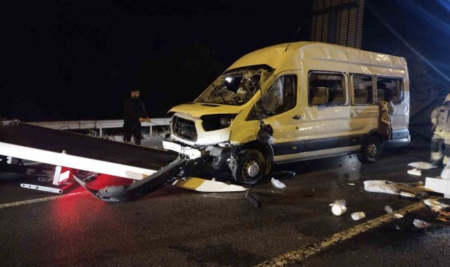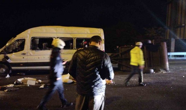 Beykoz'da otoyolda seyir halindeki servis minibüsü, sürücüsünün kontrolünden çıkarak devrildiği lazada 3 kişi yaralandı.
