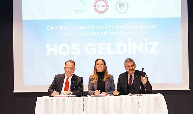 Beylikdüzü Belediyesi ve DİSK Genel-İş Sendikası, toplu iş sözleşmesine imza attı. Beylikdüzü Atatürk Kültür ve Sanat Merkezi'nde gerçekleştirilen imza törenine Beylikdüzü Belediye Başkanı Mehmet Murat Çalık, DİSK Genel Başkanı Arzu Çerkezoğlu, DİSK Genel- İş Sendikası Genel Başkanı Remzi Çalışkan ve yönetim kurulu üyeleri ile belediye personelleri katıldı.