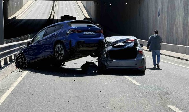 İstanbul Beylikdüzü'nde alt geçitte aniden oluşan trafiği fark edemeyen sürücü aracıyla zincirleme kazaya neden oldu. 6 aracın karıştığı kazada 3 kişi hafif yaralanırken, kaza yapan arabanın başka bir arabanın üstünde durması ilginç görüntü oluşturdu.