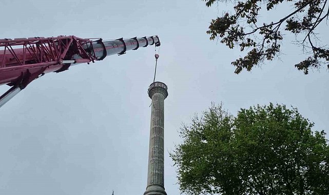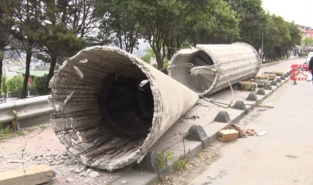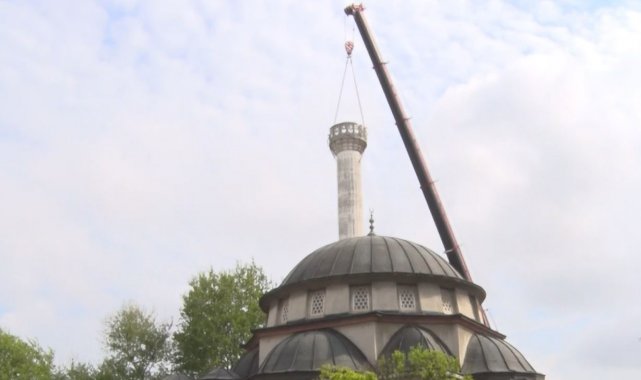 Beylikdüzü'nde Bakırcılar Sanayi Camii'nin eskiyen minaresi kontrollü olarak yıkıldı