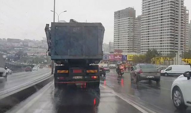 Beylikdüzü E-5 yanyolda öğle saatlerinde kayda geçen hurda yüklü kamyonun trafikteki görüntüsü bu kadarına da "pes" dedirtti. Yağmur altında devam eden tehlikeli yük sevkiyatı, trafikteki sürücülerin tepkisini çekti. Kamyonun hafif aralıklı kasasından taşan hurdalarla trafikte ilerleyen sürücü hem kendi hem diğer vatandaşların canını tehlikeye attı. O anlar ise cep telefonu kamerasıyla görüntülendi.